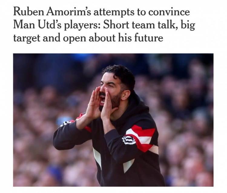 自11月上任以来,阿莫林尝试了多种与球员沟通的方式。在古迪逊公园球场逼仄的更衣室里,他选择了使用简明扼要的表达方式。当时曼联0-2落后埃弗顿,正经历赛季最糟糕的比赛状态,但阿莫林没有进行冗长的战术讲解。
