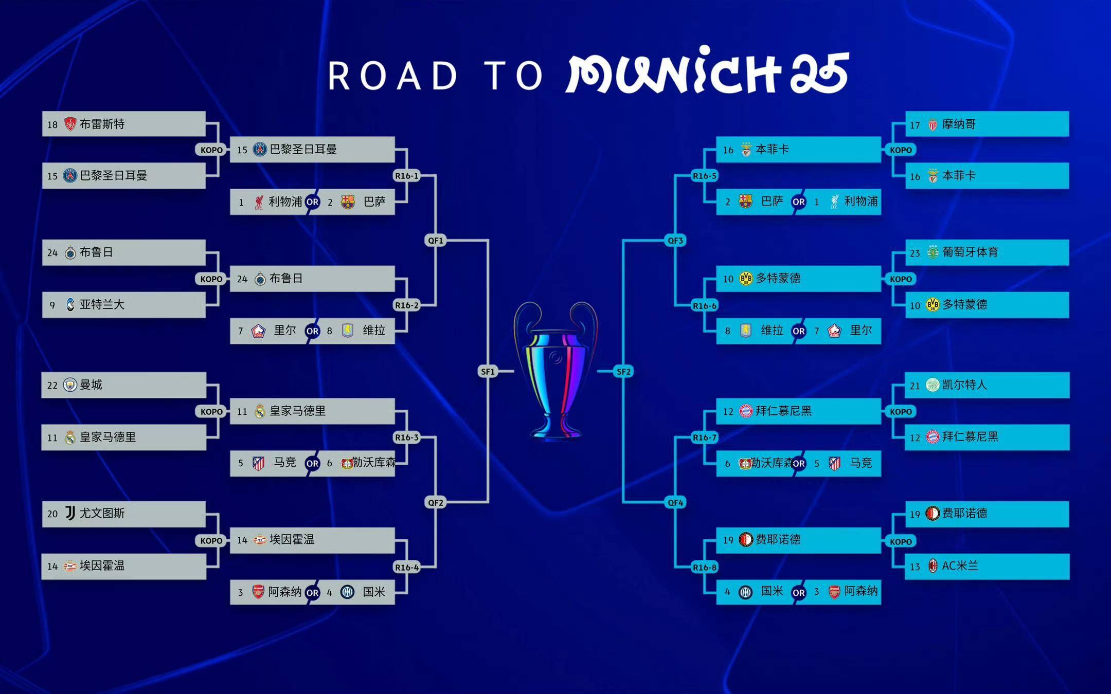 北京时间2月20日凌晨,随着淘汰赛附加赛最后4场比赛落下帷幕,本赛季欧冠联赛16强球队全部产生,16强对阵抽签仪式将于北京时间2月21日晚进行。
