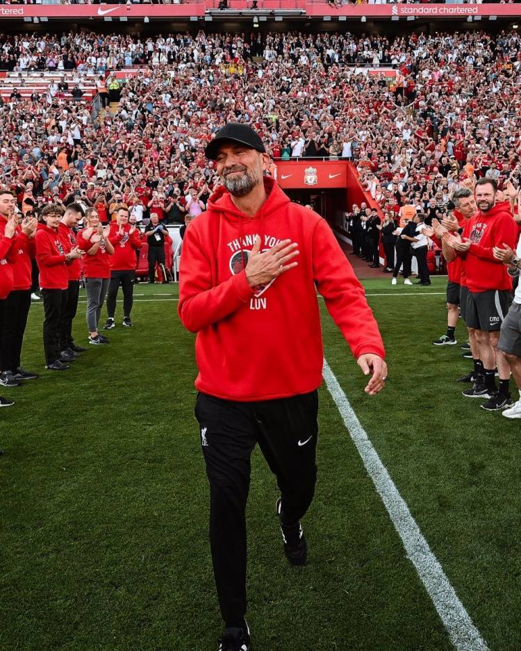 直播吧5月19日讯 今日,利物浦俱乐部通过官方社交媒体发布照片,克洛普告别安菲尔德整整一周年。