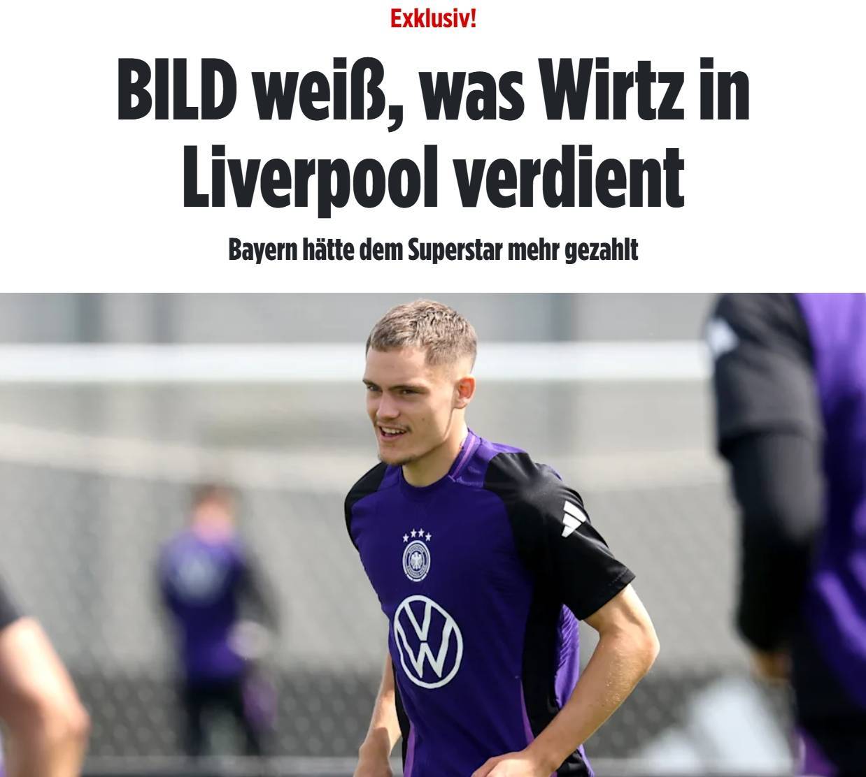 《图片报》表示,维尔茨在利物浦的年薪预计在2000万-2200万欧元之间(约合32-35万镑周薪),具体金额将取决于他在利物浦的表现。