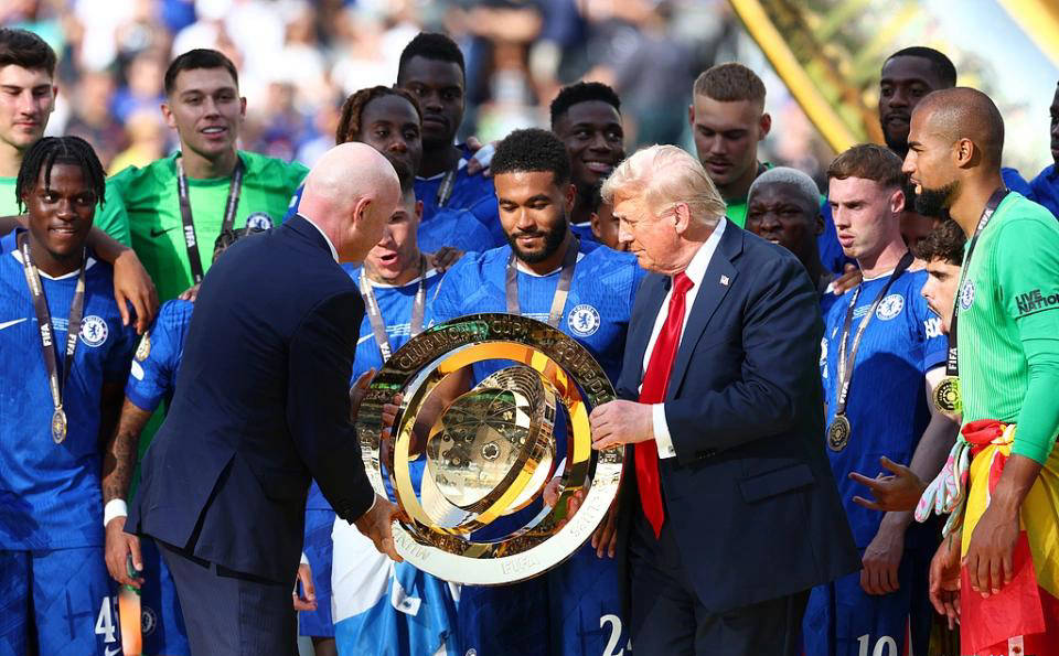 切尔西众将傻眼!特朗普颁奖后硬占C位不离开,外媒直言:尴尬又荒唐